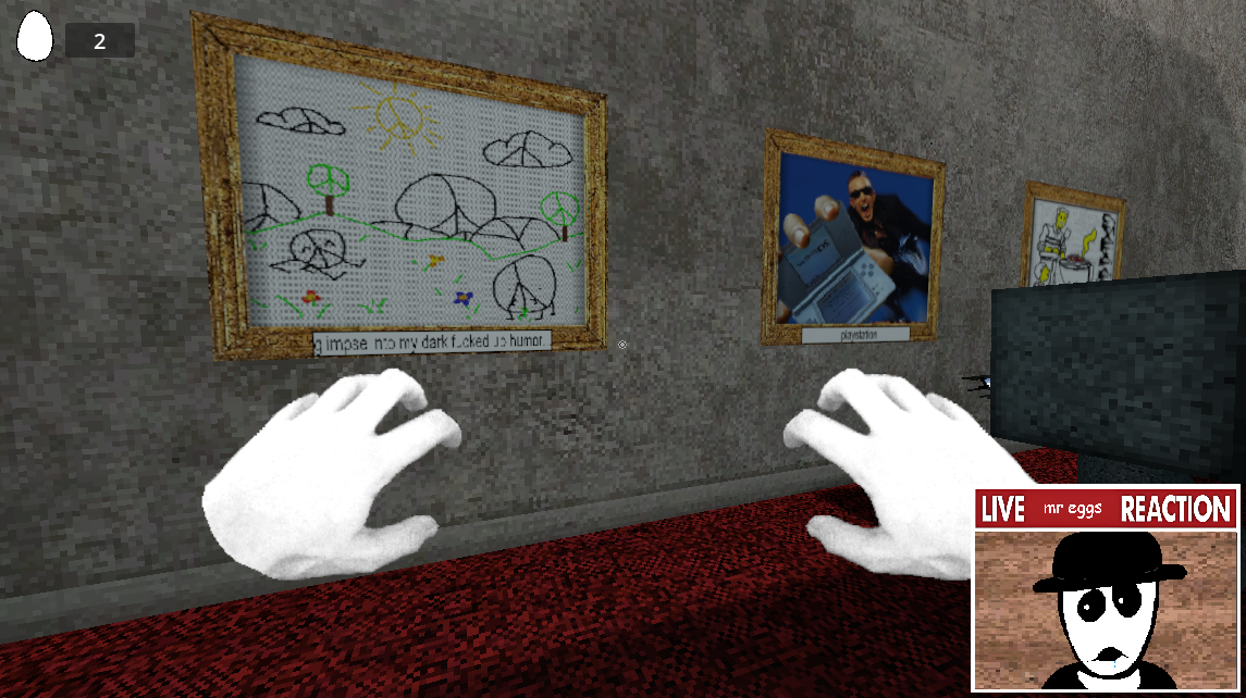 THE WEBSITE IS BLUEAMAKESTRASH.ITCH.IO/MR-EGGS THE GAME HOST ON ITCH IO